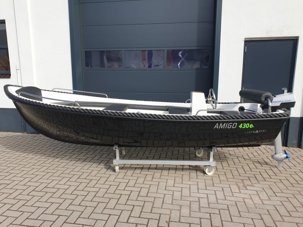 AlgemeenDe Amigo 430e classic sloep is een zeer complete en volledig elektrisch uitgevoerde sloep. De stuurconsole maakt de boot erg comfortabel en eenvoudig in gebruik. Door z