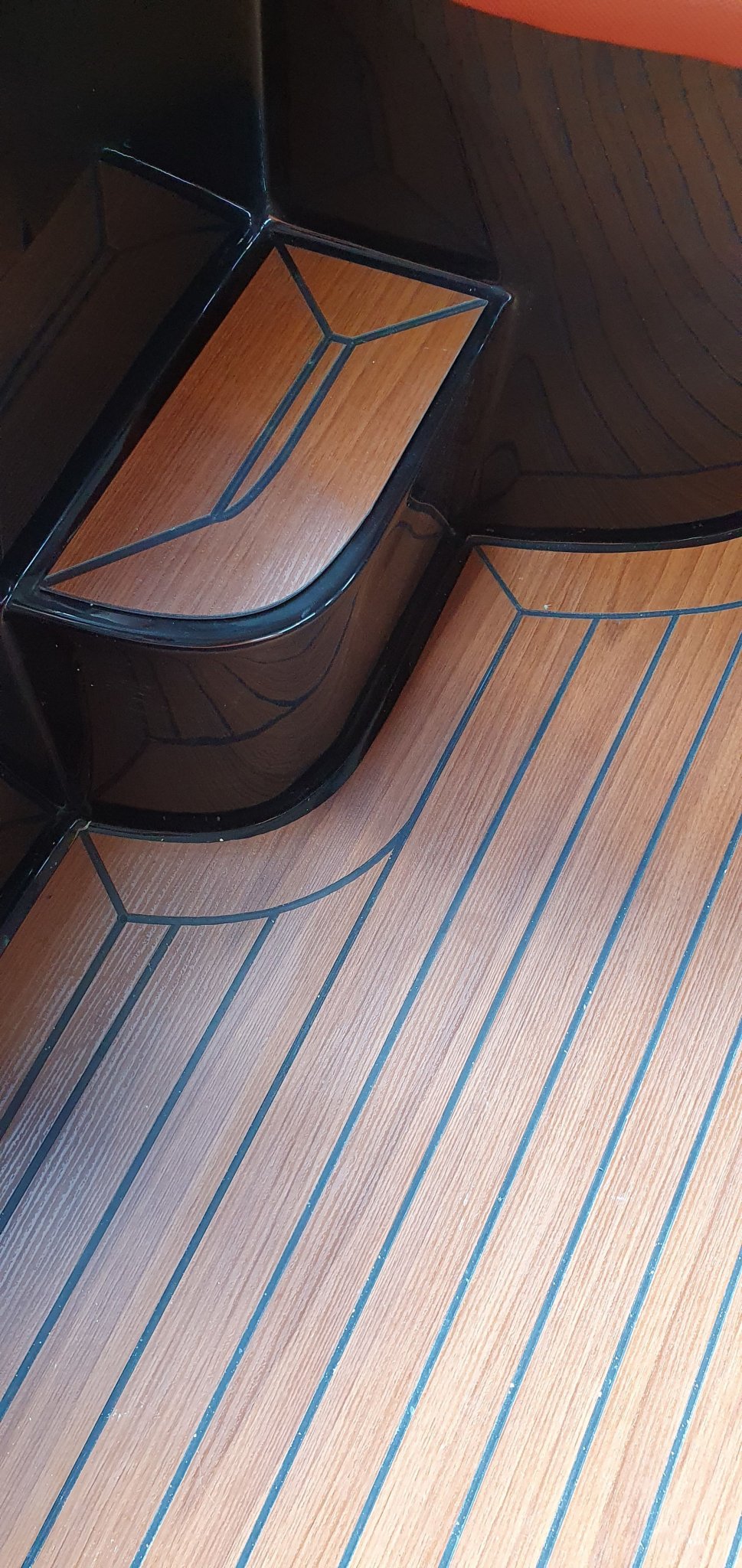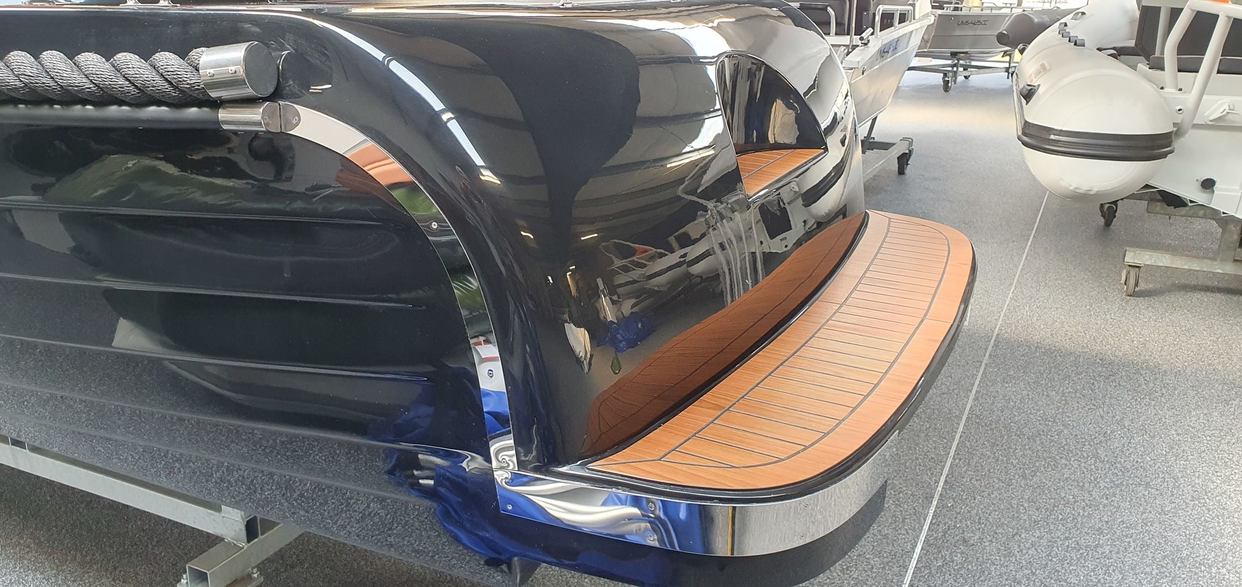 AlgemeenDe Maassloep 570 tender met BUN wordt standaard geleverd met een mooie gedetailleerde Fin Teaklook vloer en luxe kussenset. De sloep is voorzien van stijlvolle chromen