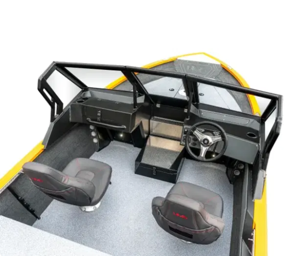 De boeg is zorgvuldig ontworpen om uw trollingmotor eenvoudig te bevestigen. De console van de bestuurder biedt plaats aan twee 12-inch kaartplotters, zodat u voldoende ruimte heeft voor navigatiehulpmiddelen.